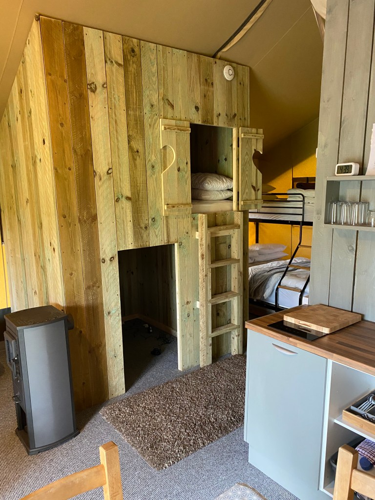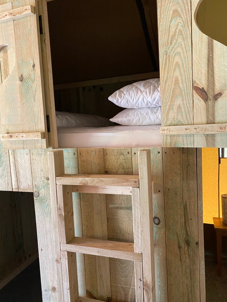 Our superb tents offer spacious accommodation for up to six guests. Each tent has two ‘bedroom’s’, one with a kingsize and the other with a double and single bunk overhead.